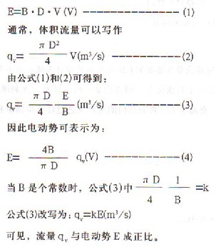 在圖1.1中,當(dāng)導(dǎo)電流體以平均V(m/s)通過裝有一對測量電*的一根內(nèi)徑為D(m)的絕緣管子流動時,并且該管子處于一個均勻的磁感應(yīng)強度為B(T)的磁場中。那么,在一對電*上就會感應(yīng)出垂直于磁場方向和流動方向的電動勢(E)。由電磁感應(yīng)定律可寫做(1)式: