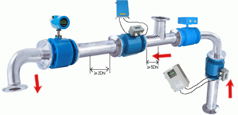 傳感器上游要有一定的直管段,但其長度與其它流量儀表(如超聲波流量計(jì))相比較要求較低。上游如有90°彎頭、T形管、同心異徑管、全開閘閥等擾流件,一般要求離電*中心線(不是傳感器進(jìn)口斷面)有5倍直徑(5D)長度的直管段,如是上游有閘閥且沒有全部打開,一般要求10D長度的直管段;下游直管段長度一般為2D-3D,或更短;