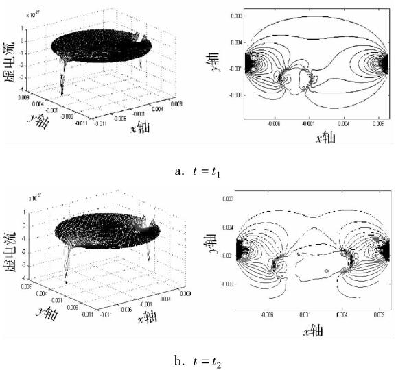 虛電流決定著一體式電磁流量計(jì)測量區(qū)域權(quán)值函數(shù)的分布情況,也就影響著一體式電磁流量計(jì)內(nèi)部敏感場分布情況。