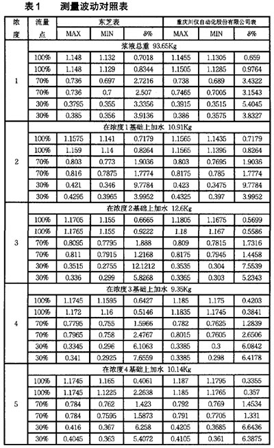 在造紙行業(yè)有大量的紙漿液體需要測(cè)量,就會(huì)用到大量的流量測(cè)量儀表,目前在造紙行業(yè)中用于測(cè)量流量的儀表,主要有電磁流量計(jì)等儀表,因?yàn)?a href="http://m.8886665.com">電磁流量計(jì)具有非常強(qiáng)的優(yōu)點(diǎn),所以非常適合在紙漿的流量測(cè)量中使用。在紙漿實(shí)驗(yàn)裝置上,使用串聯(lián)在同一管道上該公司生產(chǎn)的防爆型電磁流量計(jì)價(jià)格與日本東芝的防爆型電磁流量計(jì)價(jià)格測(cè)量不同濃度和流量的紙漿漿液,以驗(yàn)證其可靠性。波動(dòng)率對(duì)比實(shí)驗(yàn)結(jié)果表明,該產(chǎn)品用于紙漿漿液測(cè)量時(shí)能夠很好地克服漿液噪聲。在滿流量測(cè)量時(shí),上述實(shí)驗(yàn)中各濃度下漿液測(cè)量穩(wěn)態(tài)波動(dòng)率均在1%以內(nèi);其它流量下測(cè)量時(shí),由于實(shí)驗(yàn)系統(tǒng)主管道上游分流控制流速不穩(wěn),進(jìn)而導(dǎo)致測(cè)量穩(wěn)態(tài)波動(dòng)率相對(duì)較大,甚至達(dá)到近7‰ 但由表1可知,在各種漿液濃度及各流量點(diǎn)下,凱銘儀表有限公司生產(chǎn)的防爆型電磁流量計(jì)價(jià)格的穩(wěn)態(tài)波動(dòng)率始終與日本東芝防爆型電磁流量計(jì)價(jià)格的測(cè)量結(jié)果一致,從而表明實(shí)驗(yàn)系統(tǒng)的測(cè)量結(jié)果能準(zhǔn)確反映實(shí)際漿液流量大小。 說明:MAX、MIN分別表示該組數(shù)據(jù)測(cè)得流速的的*大值和*小值,單位m/s。