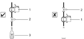 4.2.2 安裝位置。安裝在閥門附近,灌裝流量計不能安裝在控制閥的下游(圖6),如果裝在控制閥的下游,在一個灌裝周期結(jié)束后,傳感器的測量管道完全排空,這樣會嚴重影響下個周期的測量。