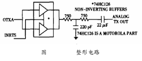 如圖4所示,緩沖器74HC126的作用是使方波的上升沿和下降沿趨于平緩,使信號滿足HART物理層規(guī)范所要求的信號波形上升沿和下沿的時要求,因為較平緩的上升沿和下降沿時間可以降低與其它網(wǎng)絡(luò)間的串?dāng)_。