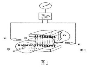 當導(dǎo)電流體經(jīng)傳感器通道時,導(dǎo)電流體流向垂直于磁力線方向,流體流動時切割磁力線,在導(dǎo)電流體中有感應(yīng)電勢E產(chǎn)生,感應(yīng)電勢與流速之間的關(guān)系式為:E=KBvD