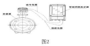 強堿流量計是由流量傳感器和轉(zhuǎn)換器(也叫顯示器)兩大部分組成。測量管上下裝有激磁線圈,通激磁電流后產(chǎn)生磁場穿過測量管,一對電*裝在測量管內(nèi)壁與液體相接觸,引出感應(yīng)電勢,送到轉(zhuǎn)換器。激磁電流則由轉(zhuǎn)換器提供。如圖2所示: