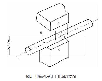 砂漿流量表是利用法拉*電磁感應(yīng)定律設(shè)計(jì)的流量測量儀表,用于測量導(dǎo)電液體的體積流量。根據(jù)法拉*電磁感應(yīng)定律,當(dāng)導(dǎo)體切割磁力線運(yùn)動(dòng)時(shí),導(dǎo)體內(nèi)將產(chǎn)生感應(yīng)電動(dòng)勢Ex(圖1),方向根據(jù)右手定則確定,感應(yīng)電動(dòng)勢Ex的大小與磁場的磁感應(yīng)強(qiáng)度B、傳感器管道的內(nèi)徑D和流過導(dǎo)電液體的流速V成正比,B、D、V三者相互垂直,即Ex=BDV。