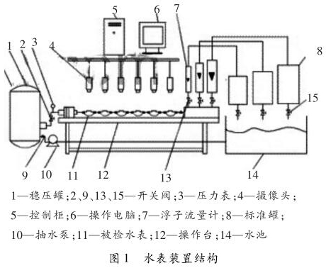 水表檢定裝置是全自動(dòng)水表校驗(yàn)裝置,水表檢定裝置以計(jì)算機(jī)為核心,它在需要檢定水表上方安裝攝像裝置,連接到圖像采集和高速計(jì)算器中,計(jì)算器可以識別水表指針的流量數(shù)值,自動(dòng)控制水流量,實(shí)現(xiàn)水表檢驗(yàn)的全自動(dòng)化,針對水表檢定裝置存在的問題提出解決方案,減少水表檢定裝置在使用過程中出現(xiàn)質(zhì)量問題,讓水表檢定裝置可以不斷完善。