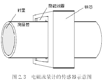 傳感器的主要作用是將通過管道的流量信號進(jìn)行轉(zhuǎn)換,將其轉(zhuǎn)為電動勢。市面上常見的傳感器主要有下圖 2.4 中如測量管、鐵芯、勵(lì)磁線圈、襯里等結(jié)構(gòu)。