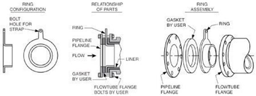 圖6.安裝在非金屬管道中的水處理流量計晶片式流量管(未顯示螺栓)。