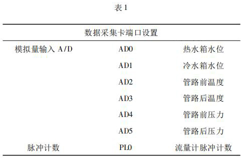 數(shù)據(jù)采集系統(tǒng)由工控機、分體式污水流量表以及數(shù)據(jù)采集卡組成。 4000 次冷熱沖擊試驗要求在在*大流量 qs 條件下運行,對流量數(shù)據(jù)的采集用到分體式污水流量表及數(shù)據(jù)采集卡。分體式污水流量表采集管路流量,數(shù)據(jù)采集卡將分體式污水流量表采集到的數(shù)據(jù)反饋給工控機系統(tǒng)。過程中,試驗管路水溫以及水箱水位的采集控制也是通過數(shù)據(jù)采集卡反饋給系統(tǒng)控制。試驗過程用到的數(shù)據(jù)采集卡采用研華生產(chǎn)的PCI - 1711。PCI - 1711 是一款多功能 PCI 總線數(shù)據(jù)采集卡,具有 16 路單端模擬量輸入功能、2 路 12位模擬量輸出功能、16 路數(shù)字輸入和 16 路數(shù)字輸出功能、計數(shù)器功能等。為保證冷熱沖擊試驗結(jié)果的準確性,嚴要求嚴格控制管路流量以及管路壓力。因此,管路設(shè)置前后管路溫度、冷熱水箱水位以及管路壓力的采集,管路流量根據(jù)分體式污水流量表脈沖計數(shù)進行采集,其數(shù)據(jù)采集卡端口設(shè)置如表 1 所示。