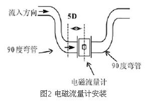 (2)直管段保證在前5D后3D為獲得儀表測(cè)量精確度,在傳感器上游側(cè)的直管段長(zhǎng)度不小于5D,下游側(cè)不小于3D(D為傳感器的名義直徑)。若在傳感器上游側(cè)有兩個(gè)以上的彎頭或其它阻流件,則前置直管段應(yīng)大于10D。