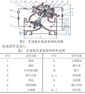 多功能水泵控制閥(結(jié)構(gòu)見圖2)的工作原理 :