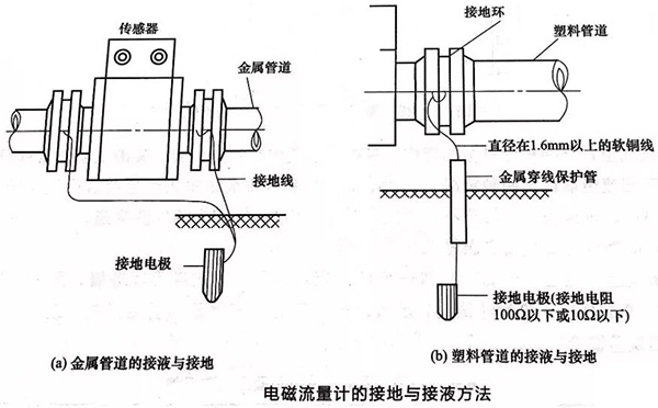 金屬管道往往與大地相同。有時候工業(yè)電網(wǎng)的地電流,如果三相不平衡電流,會流過管道。如果管道與流量計之間不是相通的,地電流、三相不平衡電流可能在流量計上產生大的電壓降,造成對流量計信號的干擾。因此,需要將流量計前后的金屬管道與流量計用金屬導線連接到一起,并接到大地。