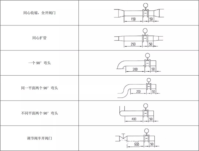 流量計(jì)的前方*少要有5xD(D為流量計(jì)內(nèi)徑)長度的直管段,后方*少要有3xD(D為流量計(jì)內(nèi)徑)長度的直管段;