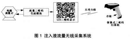 二維碼生成模塊定時向智能電磁流量計發(fā)送采集指令,后者收到指令后發(fā)送流量數(shù)據(jù)。