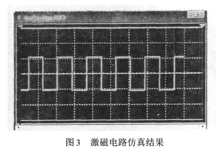 其中,Vp2是P2端口輸出電壓幅值的絕對(duì)值,此處應(yīng)該是+24V。整個(gè)電路是對(duì)稱的,且R15=R20,當(dāng)P2.9為低電平,P2.8為高電平時(shí),P2的端口2無(wú)電壓輸出,端口1輸出+24V的電壓,Vref(+)值不變,如此周而復(fù)始輸出頻率為6.25Hz的的雙*性矩形波。用Multisim仿真結(jié)果如圖3所示。