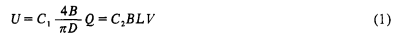 智能型電磁流量計(jì)是根據(jù)法拉*電磁感應(yīng)定律來(lái)測(cè)量導(dǎo)電性液體體積流量的儀表,其感應(yīng)電動(dòng)勢(shì)U與流速V以及流量Q的關(guān)系可由下式表示