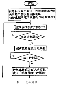 單片機控制電路主要完成3種功能:(1)控制計數(shù)電路的工作時序;(2)完成收發(fā)換能器的切換;(3)將測量的流速值通知上位機(圖6)。