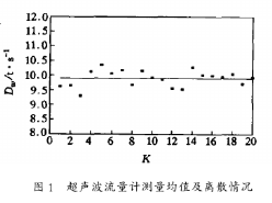 評價測量結(jié)果好壞的指標是其觀測數(shù)據(jù)精度的大小,亦即要求觀測結(jié)果的離散程度應(yīng)該盡可能小。圖1、圖2分別表示對同樣運行工況下同時采用超聲波流量計和凝汽器熱平衡方法得到的冷卻水流量測量值及其相應(yīng)的均值。其中,k為測量點數(shù)。